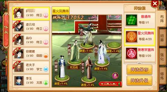 招募仆從參與戰斗,增加戰斗力,不同的仆從有不同的職業,選擇自己需要的職業來配合自己。選擇BUFF加成陣法,可以提高團隊戰斗力,陣法等級越高,所提供的BUFF加成效果越明顯。