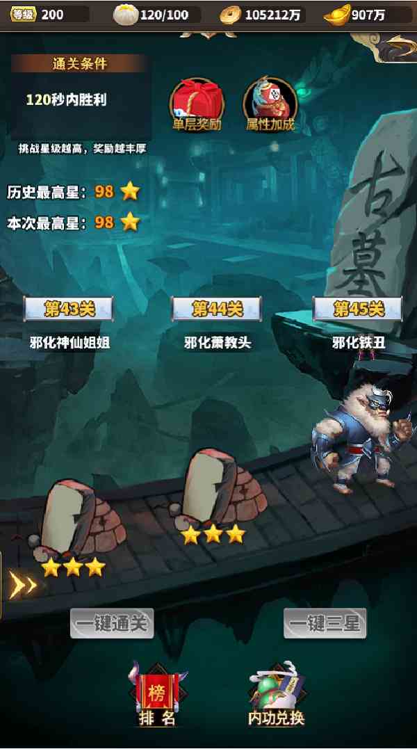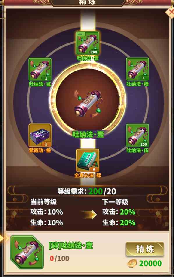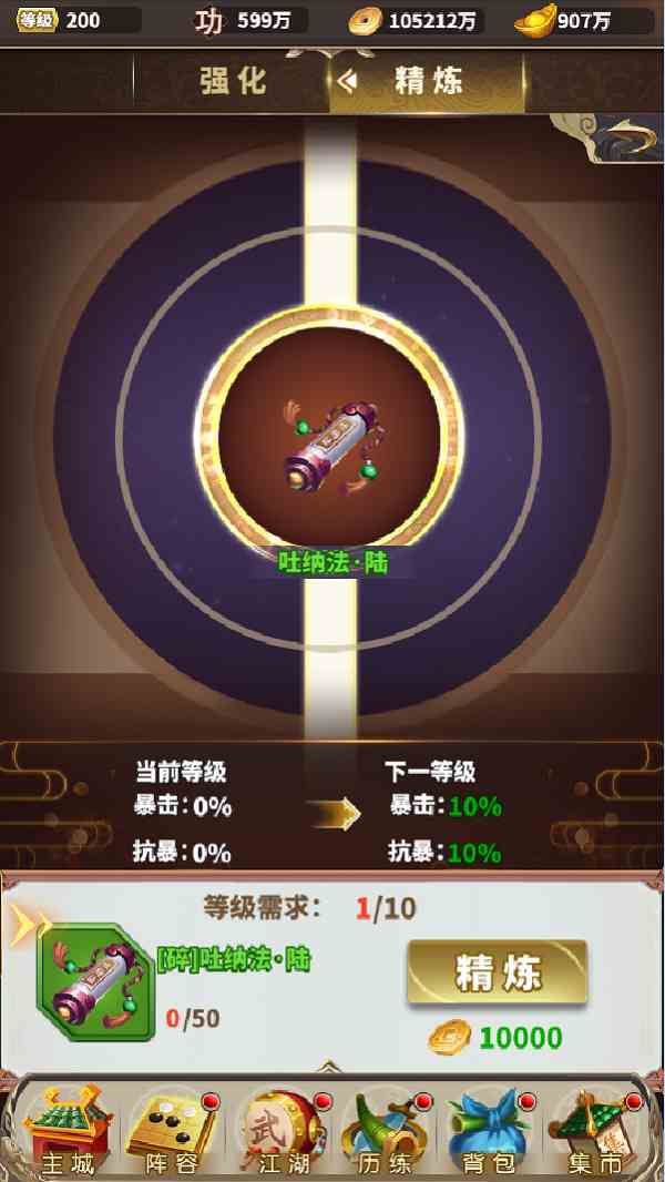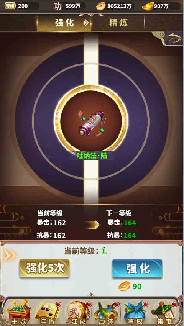 太麻煩的話,可以通過一鍵強(qiáng)化,一鍵精煉,分批修煉內(nèi)功。