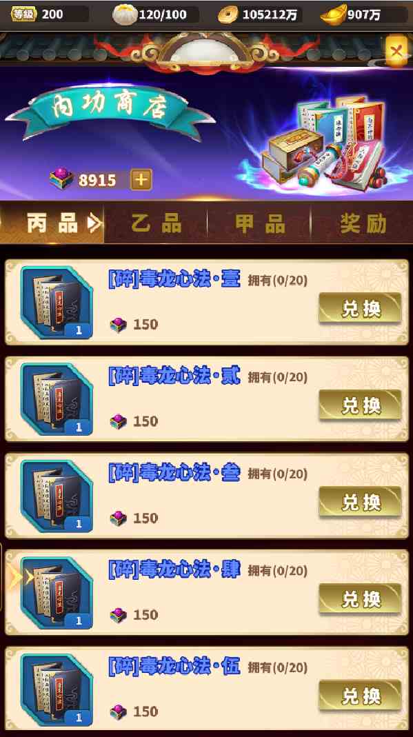 內(nèi)功商店兌換: