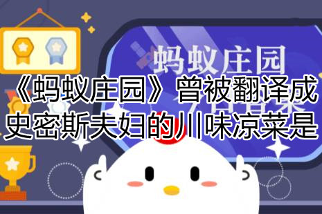 螞蟻莊園一度被翻譯成史密斯夫婦的川菜涼菜?這是10月6日螞蟻莊園小課堂的問題。很多朋友不知道具體位置。接下來小編就為大家帶來翻譯成史密斯夫婦的螞蟻莊園川味涼菜。來吧。讓我們來看看。螞蟻莊園被翻譯成史密斯家的川味涼菜是一、猜一猜:被翻譯成史密斯家的川味涼菜是情侶肺片